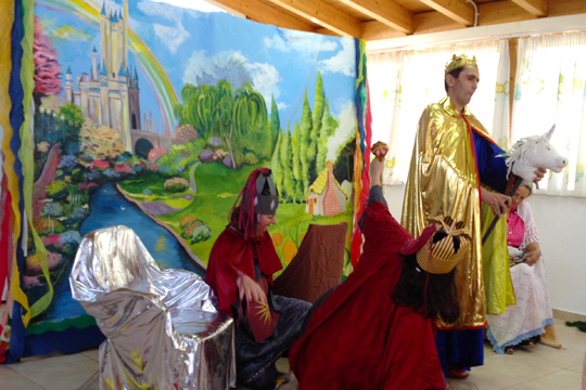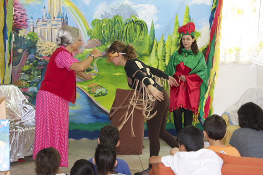 On Saturday 14 June 2014 the Recreation Group of Omilos Eksipiretiton performed a play in the community home of the organization “The smile of the child” in Melissia where the children young and old, laughed and danced with us. They even helped take down the stage-set at the end of our performance before thanking us for visiting them.