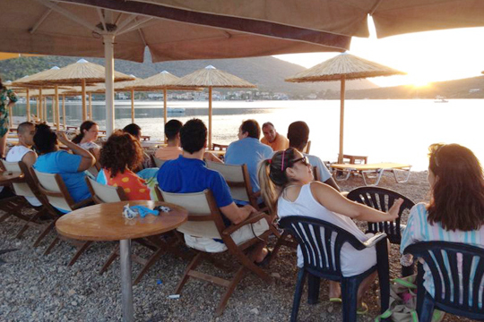 How did we explore this life stance? In different experiential ways: through group discussions and analyses, through everyday relaxation exercises by the seaside, through practicing nidra yoga, role play (dromena), chorodromena, groups discussing the inner wisdom in literature, art and so on. Also, through spending our free time together as a group, relaxing, swimming, laughing together and experiencing all that happens when a spiritual perspective is put into practice in daily living.