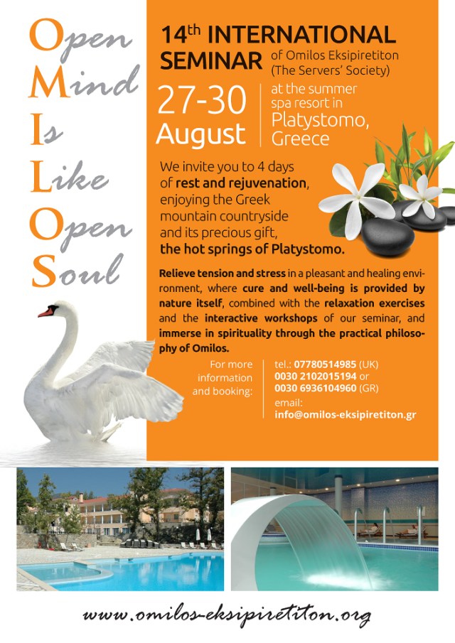 Relieve tension and stress in a pleasant and healing environment, where cure and well-being is provided by nature itself, combined with the relaxation exercises and the interactive workshops of our seminar, and immerse in spirituality through the practical philosophy of Omilos.