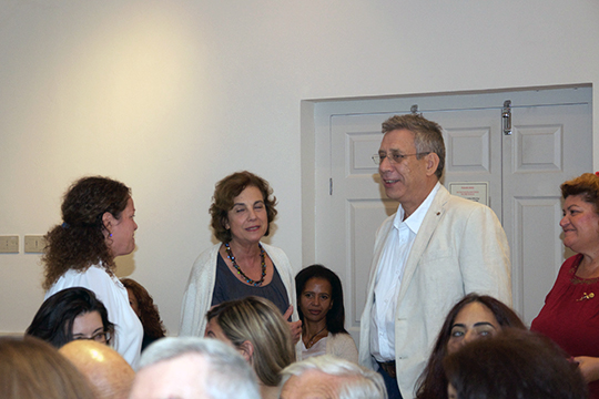 The audience was welcomed by the President of Omilos Eksipiretiton, Mr Andreas Dritsas who opened the evening by saying, “The powers of the Spirit are scattered in rays of light. To light up a torch you have to concentrate the beams of light and the best way to do that is Poetry”.