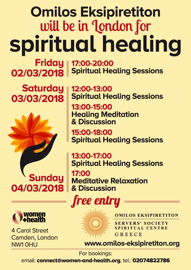 From the 2nd to the 4th of March, we will be at Women + Health, a non-profit health center in Camden, London, to offer spiritual healing and healing meditation.