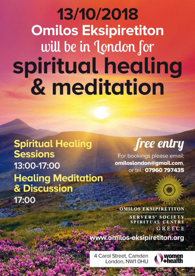 On the 13th of October, we will be at Women + Health, a non-profit health center in Camden, London, to offer spiritual healing and healing meditation.