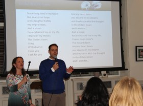 The personal experiences of members from our Literary Workshop group who had worked on this book highlighted the fact that poetry which deepens into the essence of things can become realization in everyday life. The music and the live song that were heard “brought great exaltation”, as many of the participants told us at the end of the evening.