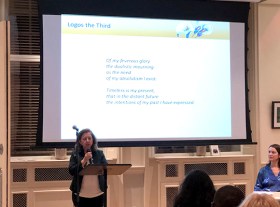 The room at the Hellenic Centre was filled with the Logos, and so were our hearts and our Beings. Its power, its pulse left no person unmoved. The reciting in Greek and English inspired the participants to stand in front of the microphone and also recite in turn. To want to become more actively a part of our group.