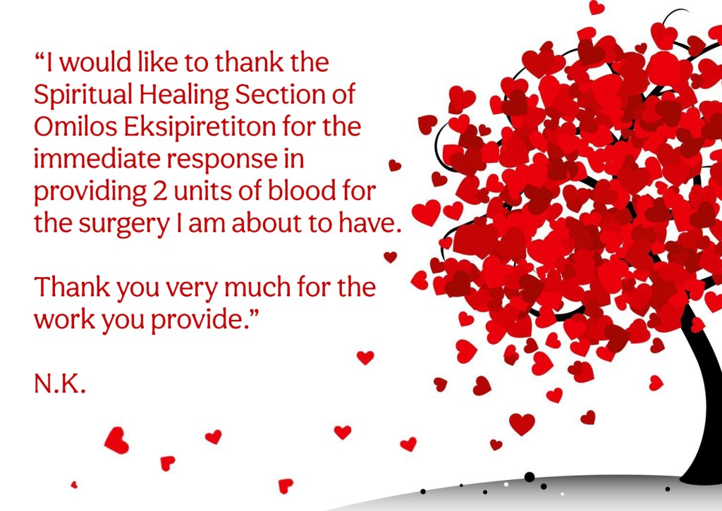 We would like to share with you a thank-you letter that we received for a blood donation made by the blood bank of Omilos Eksipiretiton (The Servers’ Society). Within the framework of our selfless offering and social action, we maintain a blood bank in the Laiko Hospital, since 1987, which serves the needs not only of our members and their relatives but also the needs of the Laiko Hospital as well as any other need that might arise and we are able to cover.