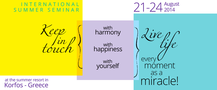 We invite you to our 4-day annual international summer seminar in picturesque Korfos, Greece where you will have the opportunity to experience spiritual living in action, surrounded by an atmosphere of warmth, balance and group spirit, while enjoying the beauty and peacefulness of the Greek sea and landscape.